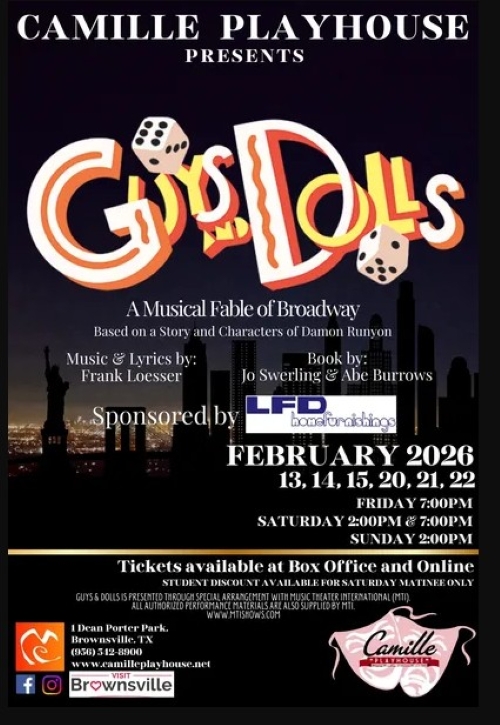 The Camille Playhouse is thrilled to present Guys and Dolls, a musical fable of Broadway filled with romance, comedy, and unforgettable music. (Camille Playhouse, 2026)