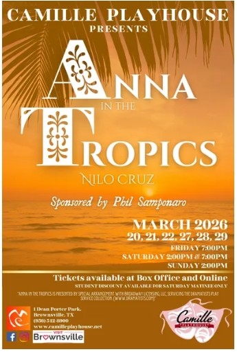 Get ready to be transported to 1929 Florida. The Camille Playhouse in Brownsville is proud to present the Pulitzer Prize-winning masterpiece, Anna in the Tropics by Nilo Cruz. (Camille Playhouse, 2026)